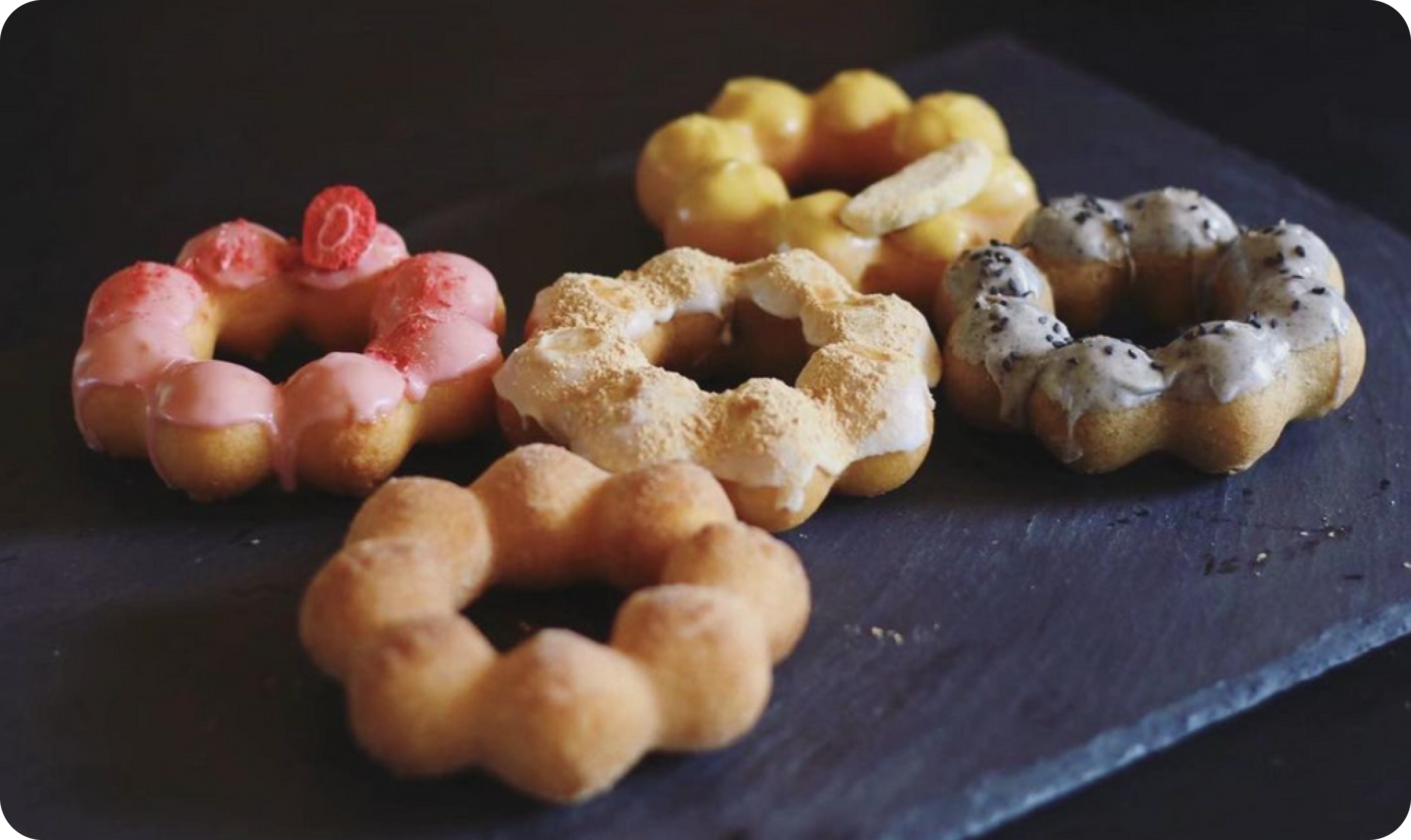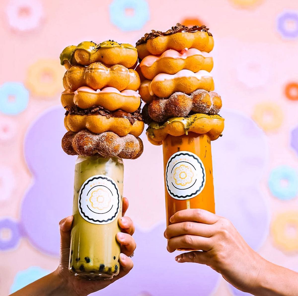Originating in Hawaii, Mochinut is a combination of an American doughnut and Japanese mochi.. Mochi + Donuts = Mochinut. Shaped into eight, connected dough balls of rice flour coated with unique flavors. Add a Korean rice flour hot dog or a boba tea for even more delicious options.